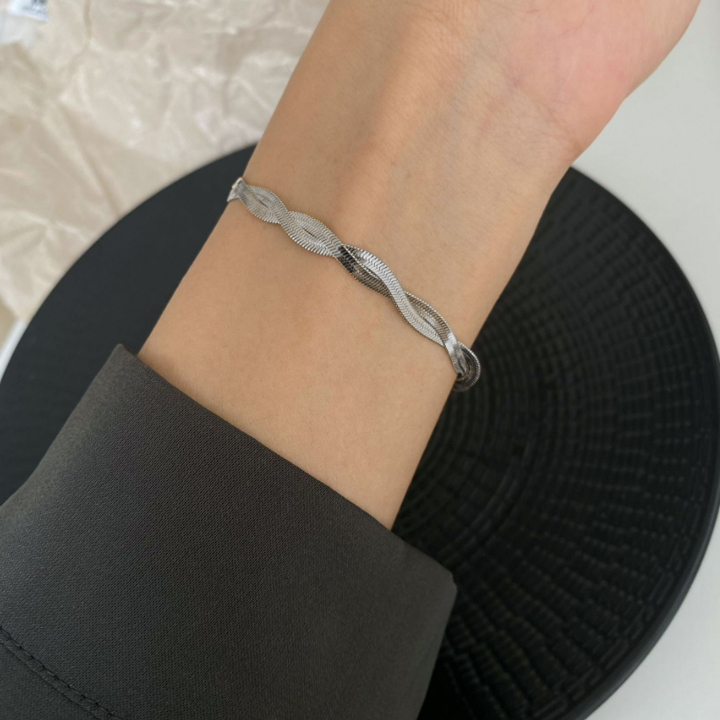 TA035 Lắc tay nữ titan 2 sợi mì dẹp thắt bính