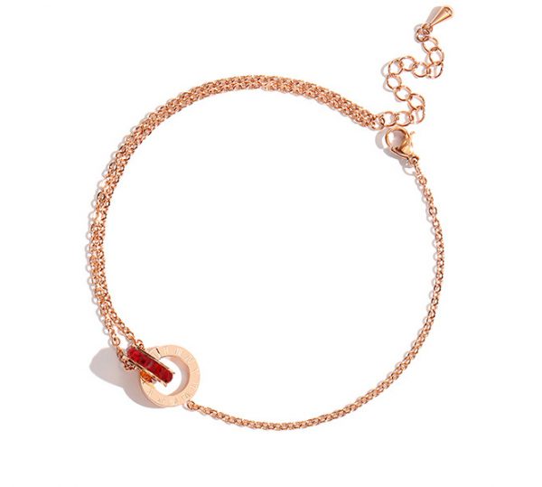 TA626 Lắc chân nữ titan khoen tròn số la mã màu hồng