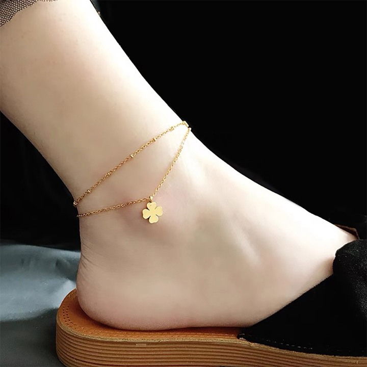 TA680 Lắc chân nữ titan 2 tầng cỏ 4 lá