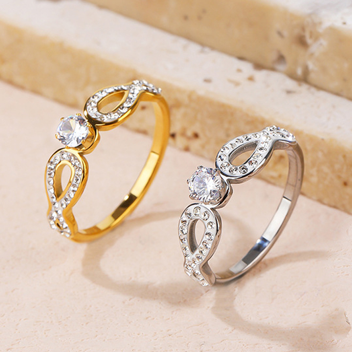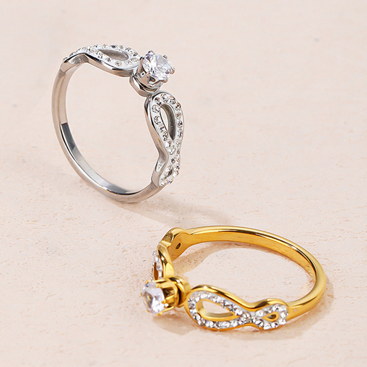 TC019 Nhẫn nữ titan 1 hột cao cách điệu 2 bên dấu vô cực