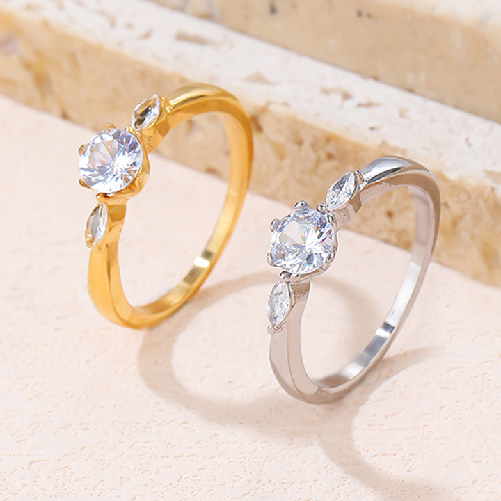 TC026 Nhẫn nữ titan 1 hột đá cao cách điệu 2 bên