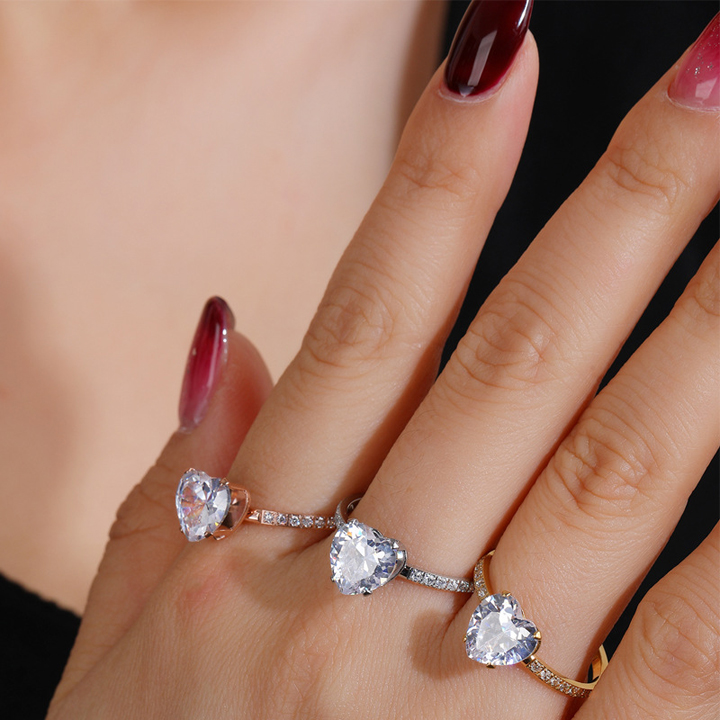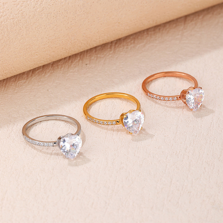 TC056 Nhẫn nữ titan hột đá cao hình trái tim cực xinh