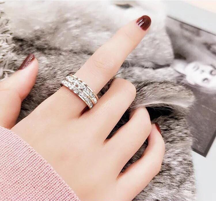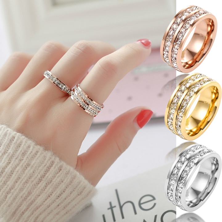 TC104 Nhẫn titan 2 hàng đá vuông thời trang Hàn Quốc