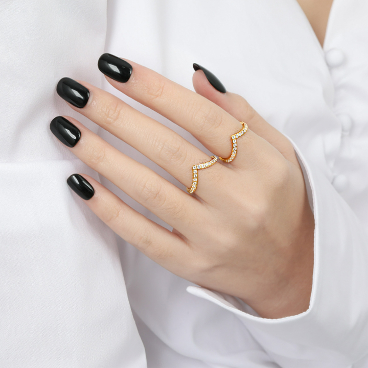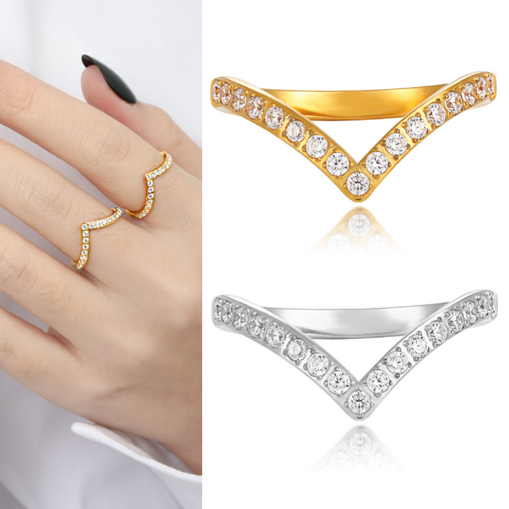 TC110 Nhẫn titan kiểu chữ V đính kim chấu đóng