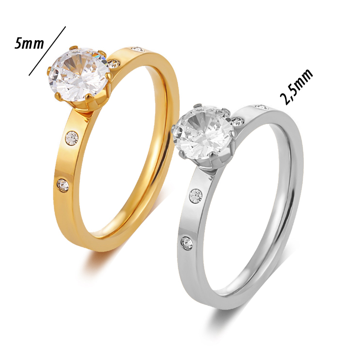TC111 Nhẫn nữ titan 1 hột đá cao cách điệu 2 viên đá tấm mỗi bên