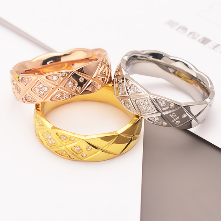 TC133 Nhẫn titan cắt hình kim cương, quả trám đính đá