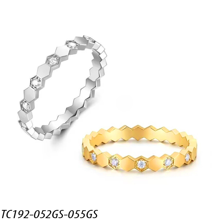 TC192 Nhẫn titan nữ hình tổ ong lục giác cách điệu kim cương