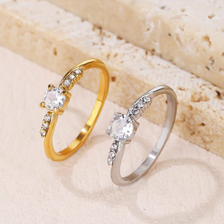 TC199 Nhẫn nữ titan 1 hột cao cách điệu kim tấm 2 bên