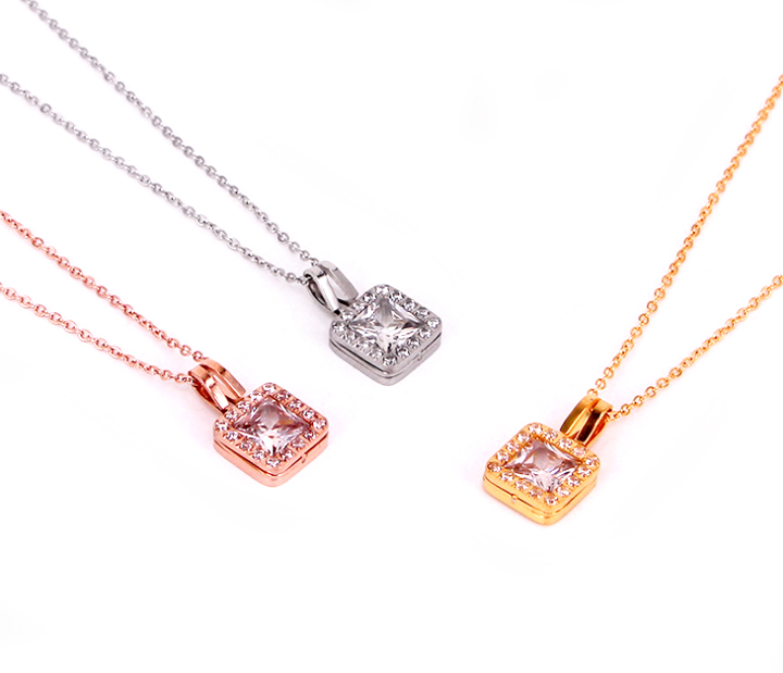 TN327 Dây chuyền titan mặt vuông đính kim cương