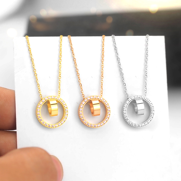 TN356 Dây chuyền titan 2 nhẫn lồng đính đá