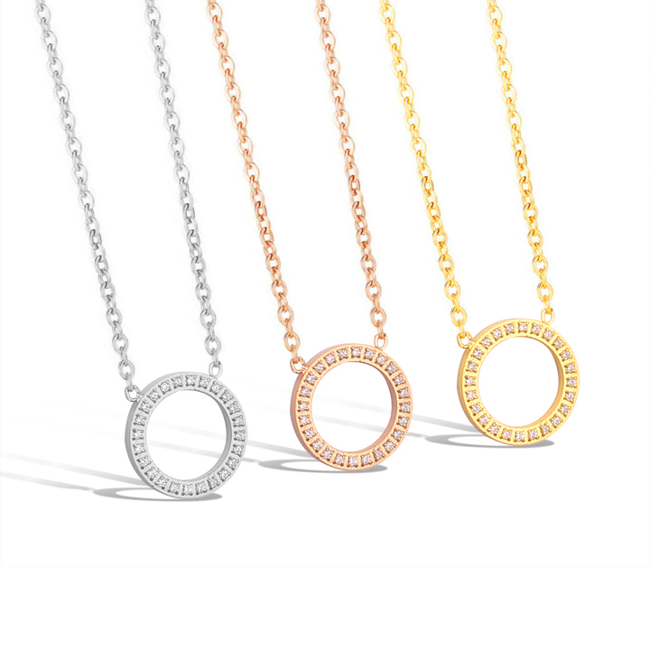 TN436 Dây chuyền titan mặt vòng tròn đính full đá