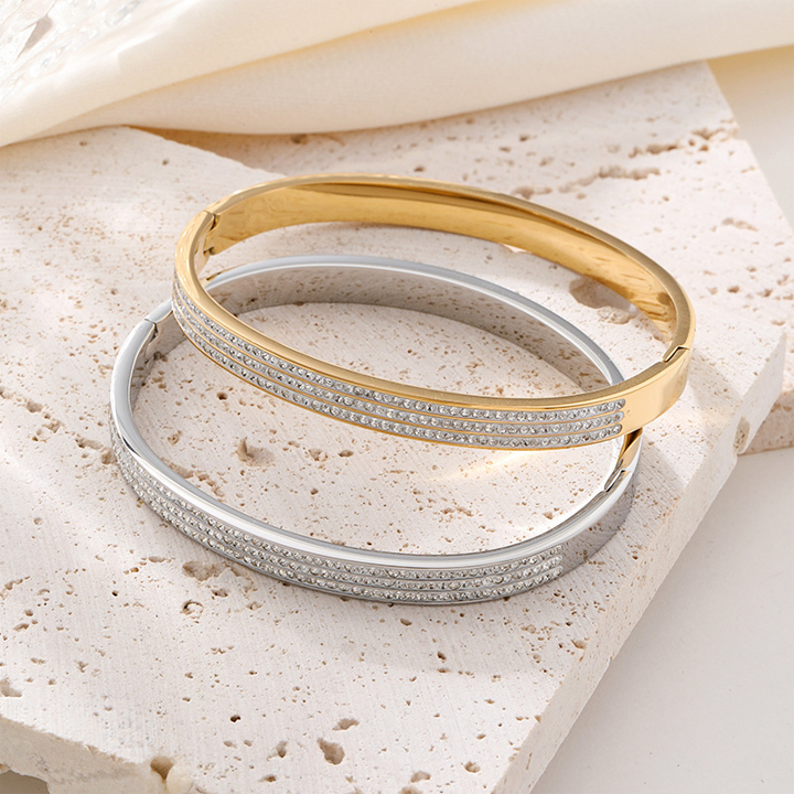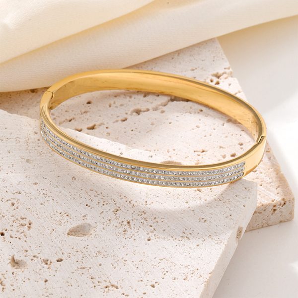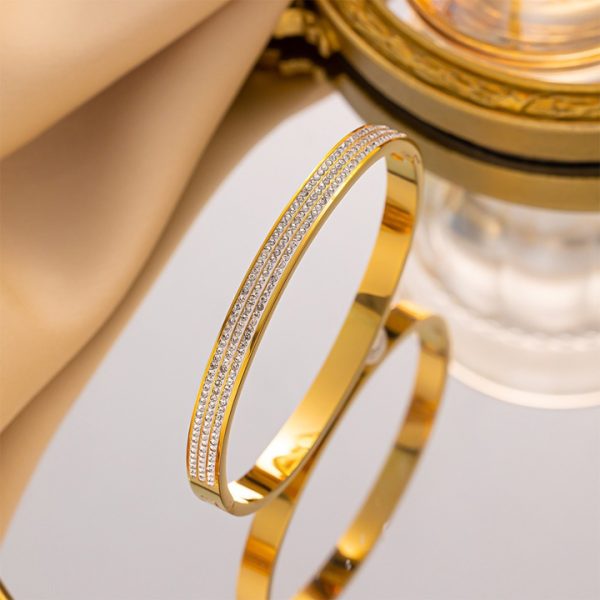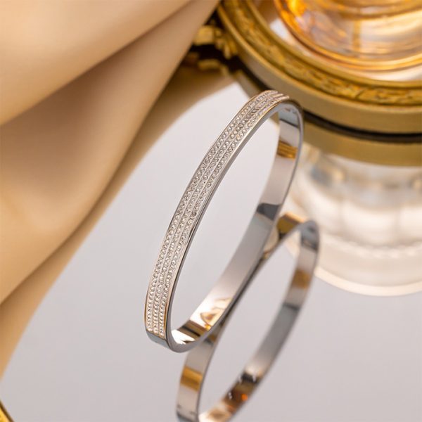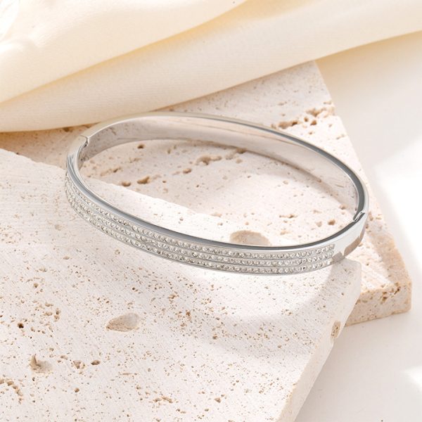 TV147 Vòng tay inox titan thời trang 3 hàng đá kim cương